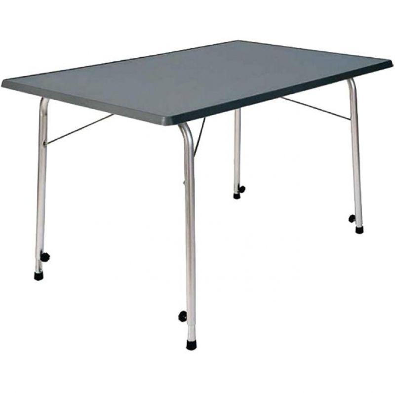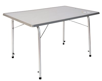 Sehr stabiler Klapptisch. Halb-automatisch einzeln verstellbare Tischbeine von 56 bis 72 cm. Die Tischplatte (SEVELIT) ist wetterfest, leicht zu reinigen, kälte- und hitzebeständig (bis zu 180°). Gestell aus eloxiertem Aluminium (ø 25 mm). Belastbarkeit bis zu 50 kg. Hohe Stabilität durch zusätzliche Seitenstreben. Made in Holland.