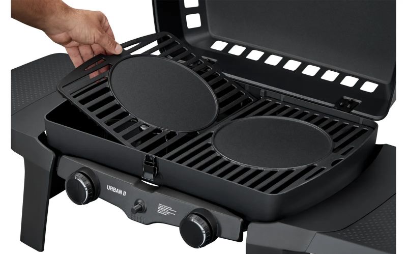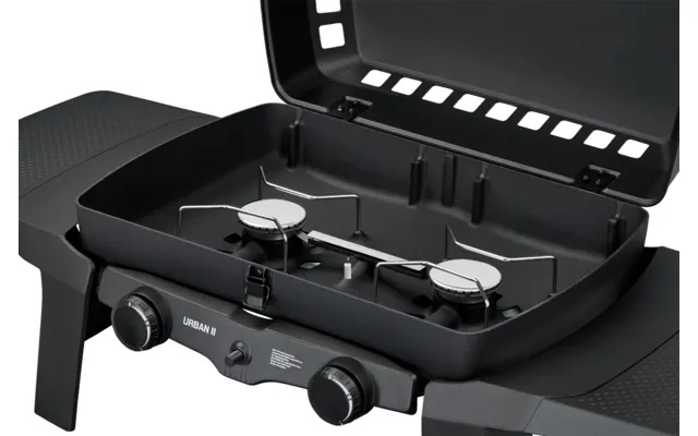 Der Tischgrill vereint maximale Leistung auf kleinstem Raum, ideal für den Balkon oder spontane Grillpartys unterwegs. Mit zwei regelbaren Edelstahlbrennern gelingt nicht nur direktes und indirektes Grillen, sondern auch das Kochen wird zum Kinderspiel - Grillen, Kochen, Backen. Der emaillierte Gussrost bietet dir die Wahl zwischen einem scharfen Branding oder einer flachen Pfanne für saftiges Braten. Robust, aber dennoch leicht: Die Alugussbrennkammer macht den URBAN II langlebig und handlich zugleich. Die stabilen abnehmbaren Seitentische bieten zusätzlichen Platz. Dank seines robusten Stahlgehäuses und abnehmbaren Topfrosten ist der Grill stabil und einfach zu reinigen. Mit Gasflasche oder Schraubkartusche nutzbar.