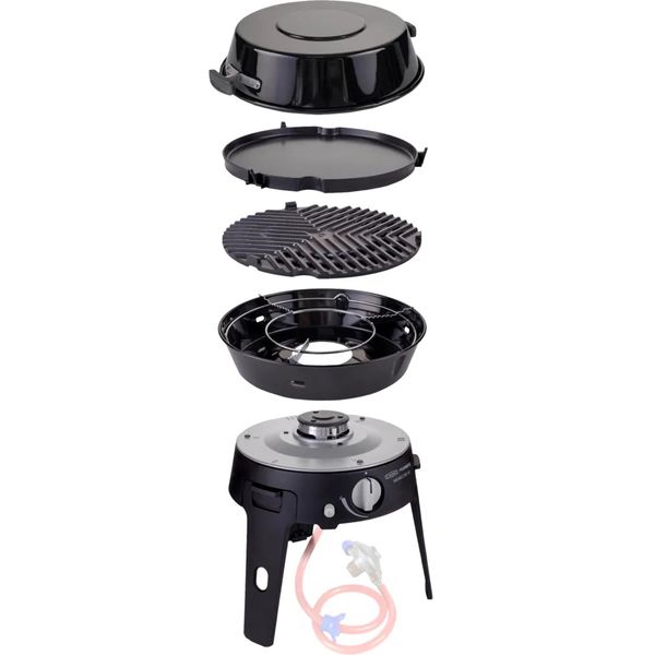 Der Safari Chef 30 ist ein kompakter, vielseitiger Gasgrill, der sich perfekt für Reisen und Urlaub eignet. Mit einem Gewicht von nur 4,5 kg und nicht weniger als vier verschiedenen Kochflächen – einem Pfannenträger, einem Grillrost, einer Grillplatte und einem Deckel, der auch als Pfanne verwendet werden kann – bietet dieser Campinggrill unendliche Möglichkeiten zum Kochen im Freien. Grillrost und Grillplatte sind mit der hochwertigen CADAC GreenGrill-Keramikbeschichtung für gesünderes Kochen ausgestattet. Diese Beschichtung ist nicht nur langlebig, sondern auch umweltfreundlich und leicht zu reinigen. Dank des integrierten Wärmeverteilers unter dem Grillrost und der Grillplatte wird die Hitze gleichmäßig über die gesamte Grillfläche verteilt. So wird vom Steak bis zum Spiegelei alles perfekt gegart.
