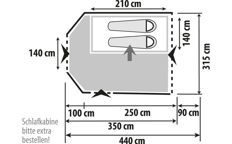 Hinweis: Die Schlafkabine ist optional bestellbar und nicht im Lieferumfang enthalten.